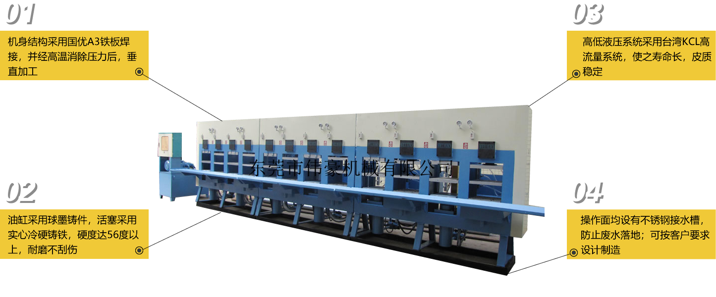 東莞市偉豪機(jī)械有限公司是一家從事各類標(biāo)準(zhǔn)和非標(biāo)準(zhǔn)油壓機(jī)的集設(shè)計(jì)、制造、銷售于一體的專業(yè)性機(jī)械制造企業(yè)。公司目前的主要產(chǎn)品有:橡膠大底油壓機(jī)、中底(MD)冷熱油壓機(jī)、四柱油壓機(jī)、框架式油壓機(jī)、EVA發(fā)泡機(jī)等,我司生產(chǎn)的機(jī)械適用于各類橡膠、鞋材、發(fā)泡等企業(yè)。外加生產(chǎn)銷售各種油壓配件,維修各種油壓機(jī)械。